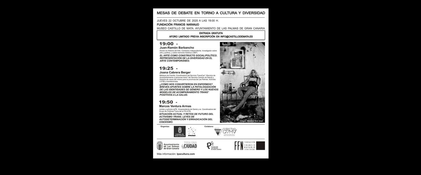 Within the framework of the exhibition “GOOD AS YOU, Narraciones sobre la Diversidad” and the celebration of ‘Trans’ in October, the month of action for the depathologisation Trans, the Foundation Francis Naranjo will organise a discussion panel concerning culture & diversity at the ‘Museo Castillo de Mata’.